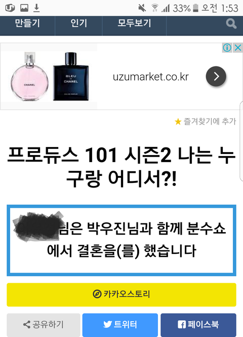 카카오스토리 보내기