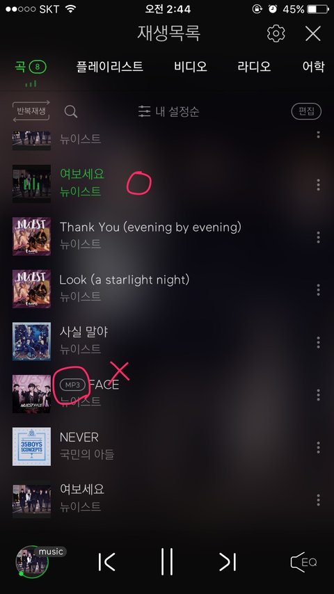 이거처럼 저 엠피쓰리 표시만 없고 반복재생 ㅇ 셔플 x 좋아요 ㅇ 라면 잘 스밍하고 있는 거얌