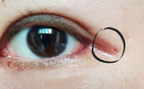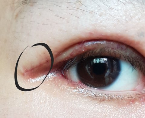 절개쌍커풀과 뒤트임을 같이 했고 나중에보니 쌍커풀라인끝부분이 이렇게 되있는데 이부분 흉이 남지않을까요 ㅠㅠ? 의사쌤은 만지지말고 시간이지나면 흐려진다고는하는데; 혹시나하는 마음에 연고는 없냐고 물어보니까 연고는없고...
