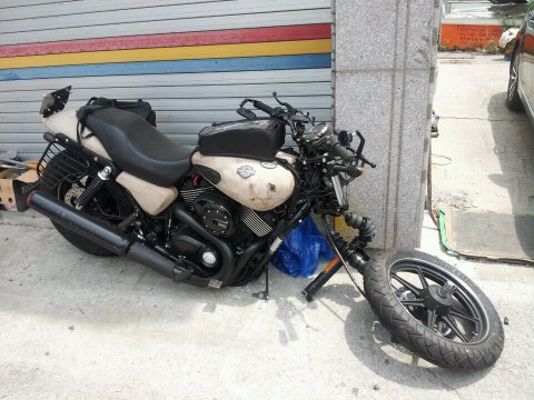 정상신호로 직진하다 사고가 난 오토바이 입니다