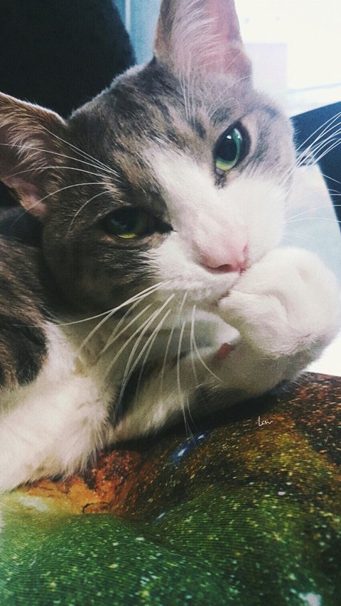 ㅋㅋㅋㅋㅋㅋㅋ 몽환적인 눈빛으로 발톱 물어뜯는중.. 저거 찍히고 방해됐는지 앞발로 조용히 카메라 밀어냄ㅋㅋ