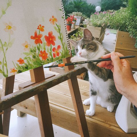 우리 오마니가 야외에서 그냥 느낌적인 느낌으로 그림 그리는데 옆에서 자기도 해 보겠다며 계속 붓 달라며 끼어듦ㅋㅋㅋㅋ>>걍 내 생각ㅋㅋ 호기심이 많아서 사람이 뭘 하기만 하면 꼭 와서 앞발로 조심스럽게 뺏어가려 함ㅋㅋㅋㅋ 뀌욥