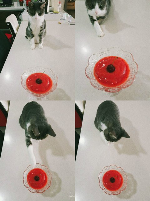 날이 더워서 집에서 딸기빙수 만들었는데 마루 눈치보다 슬금슬금 다가와서 살짝 앞발 담가 먹어봄ㅋㅋㅋㅋㅋㅋㅋㅋㅋㅋㅋㅋㅋ아ㅋㅋㅋㅋㅋㅋ 이거 찍고 엄청웃었닼ㅋㅋㅋㅋ 호기심이 생겼는지 빙수 앞에 가만히 앉아서 주인 눈치 계속 보는데 귀여워서 봐줌ㅎㅎ