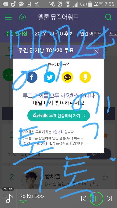 총 3표로 엑소를 투표하는거임 혹시 모르는 늅들을 위해