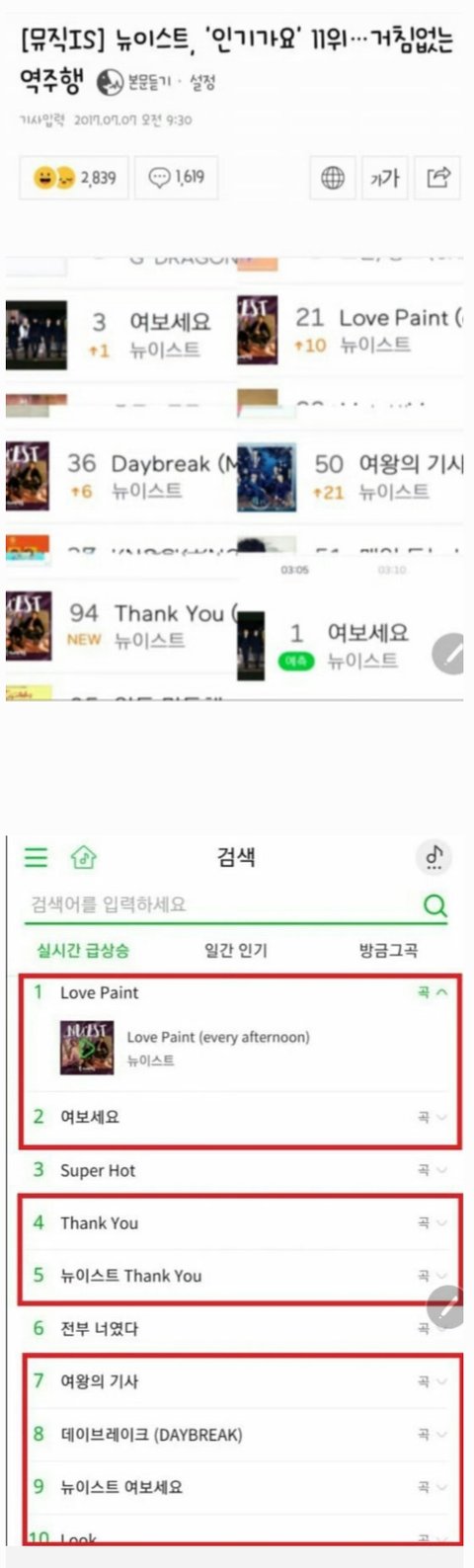 인기가요 11위! 차트진입한 뉴이스트 곡들!