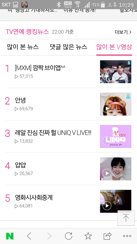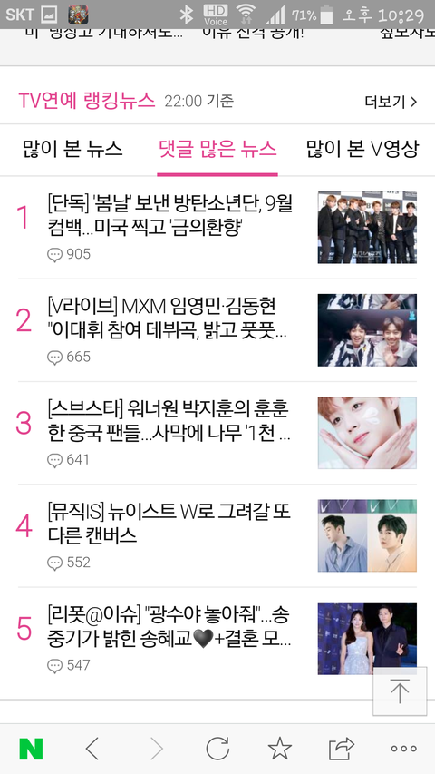 댓많은 기사 2위, v라이브 1위
