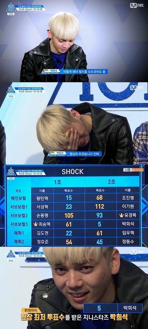 안녕 나는 그냥 프듀 거의 모든 연습생을 사랑하는 급식이야. 근데 내가 프듀 보면서 솔직히 다 각각의 매력이 있고 정말 안 뜬 연습생들 보면 안타까운 마음이 들어. 근데 내가 그중에서 제일 안타깝다고 생각하는 연습생이 있어. 솔직히 그땐 거의 병적으로 프듀에 빠졌었는데 지금은 좀 괜찮아졌거든? 근데 유일하게 못잊고 계속 페북하고 인스타 찾아보는 연습생은 이 연습생이 유일해. 일단은 이 연습생은 '엑스텐'이라는 그룹에 2인조로 데뷔했고 메인보컬이었어. 솔직히 이 노래 들었을 때 약간 빅뱅의 '판타스틱 베이비'가 생각나는 충분히 매력있는 곡이었어. 얼굴도 솔직히 눈도 이쁘게 생겼고 이목구비 또렷하고 약간 장동건 보급형이야. 이렇게 말하면 다들 알거야 프듀에서 shock 때 현장투표 5표밖에 안받은 연습생이야. 누군지 알겠지? 이 연습생은 지니스타즈 소속 박희석 연습생이야. 페북에서 라이브 봤을때 팬이 별로 없어서 우리끼리 소통했는데 노래 불러달라고 하면 다 불러주는데 노래 실력이 진짜 일품이야. 진짜 메보감은 돼. 물론 지금 워너원이 정말 매력있고 다 잘생겼지만 난 박희석이 안 뜬게 이해가 조금 안되긴 해. 그래서 안타깝게 생각하고 있어. 이 연습생에게 조금 더 관심을 줬으면 좋겠어.