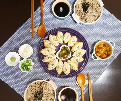 소바만들고 참치와사비마요 올린 유부초밥 만들었어요~!
