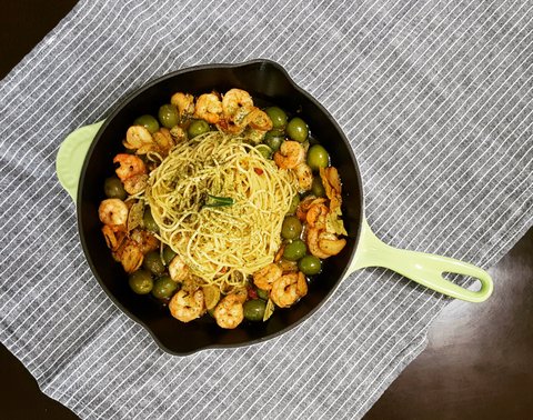 만들어드린 감바스(새우)파스타에요. 결혼전엔 음식 제대로