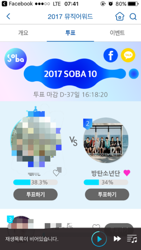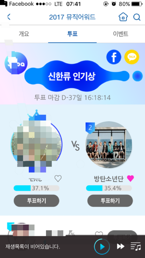 뮤료회원은 부문당 하루 1표씩 가능해