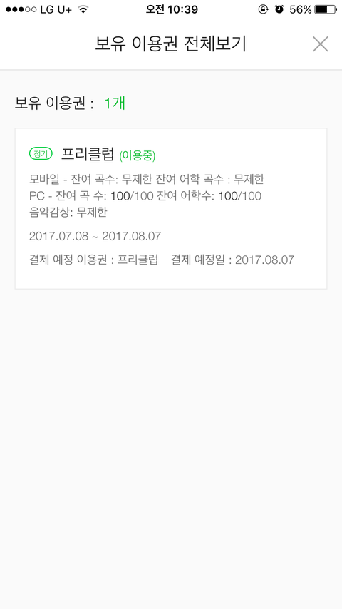 스밍이용권 따로 끊어야돼??? 나 원래 이 이용권 쓰고 았었는데 이거로는 안되는건가??