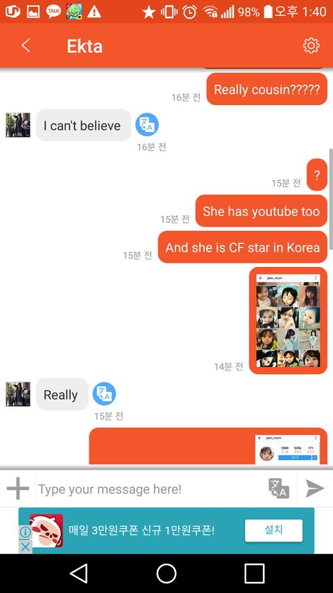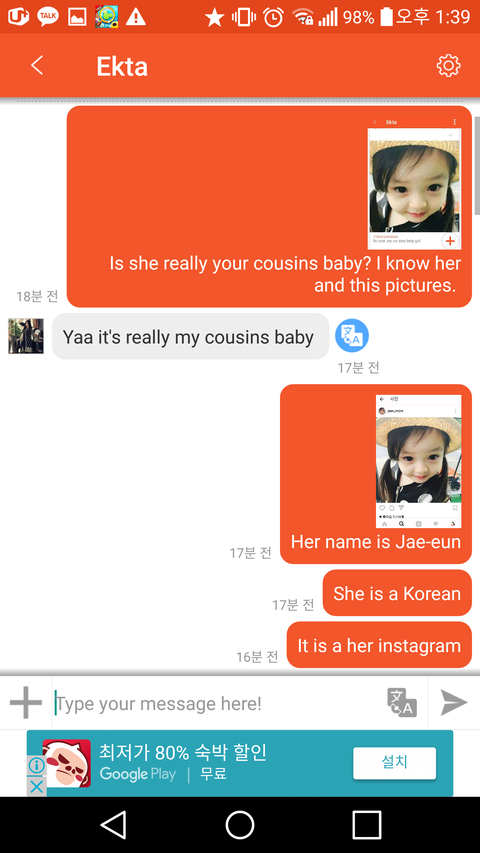 인도 여자 사진 하나랑 재은이 사진 올리면서 쟤가 얘 엄마라고 그러길래 인스타 전부 캡쳐해서 얘 엄마 한국사람이라고; 니 왜 자꾸 거짓말함? 한 뒤 쟤 니 사촌 아니면 사진 삭제하셈 했더니 차단했다 날 ㅎ..ㅋㅋㅋㄹㄹ