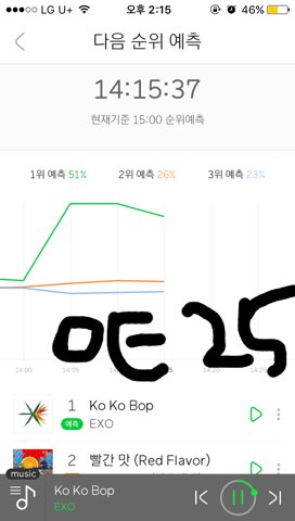 실시간 1위 계속 하면서 주간은 5위안에도 못드는 엑소