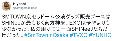 SM타운 쿄세라돔 공연 굿즈 판매 부스는 샤이니가 가장 많았고 동방신기와 엑소는 생각보다 적었다. 내 주위엔 온통 샤이니팬들뿐이었다.