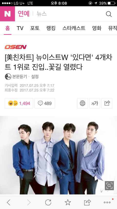 4개차트 1위 기사 !