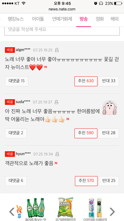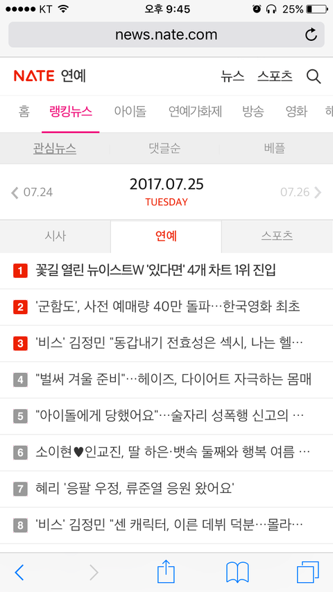 바쁜 와중에 네이트 기사도 1위햇다 ㅠ 올려주자 ㅠㅠ 오늘만큼 행복한날 또 잇을수 잇니 ㅠ 계속 유지하게 스밍 다운 화이팅!!'