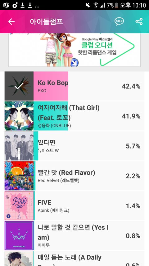 아이돌챔프 쇼챔 투표하셈 8월에 일위안할거야?