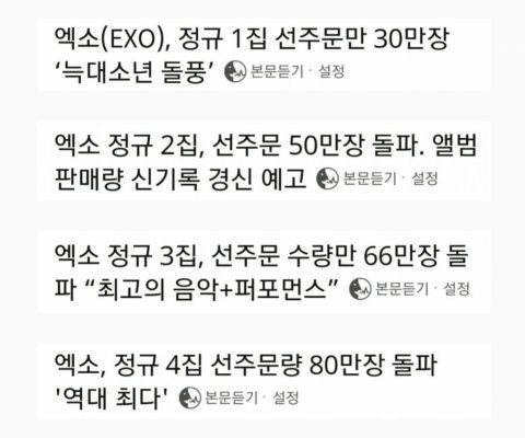 엑소가 항상 밀리언셀러를 해서 이게 대단한건지 감이 안오시는 분들을 위해 설명해 드리자면