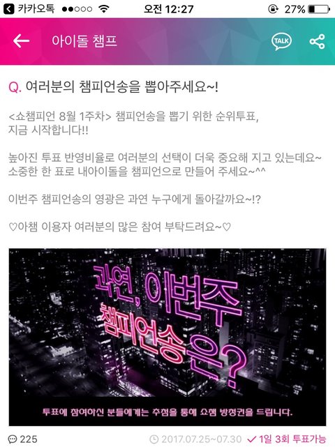 ㅅㅊㅍㅇ 8월 첫째주 순위 지금 투표중이야!!