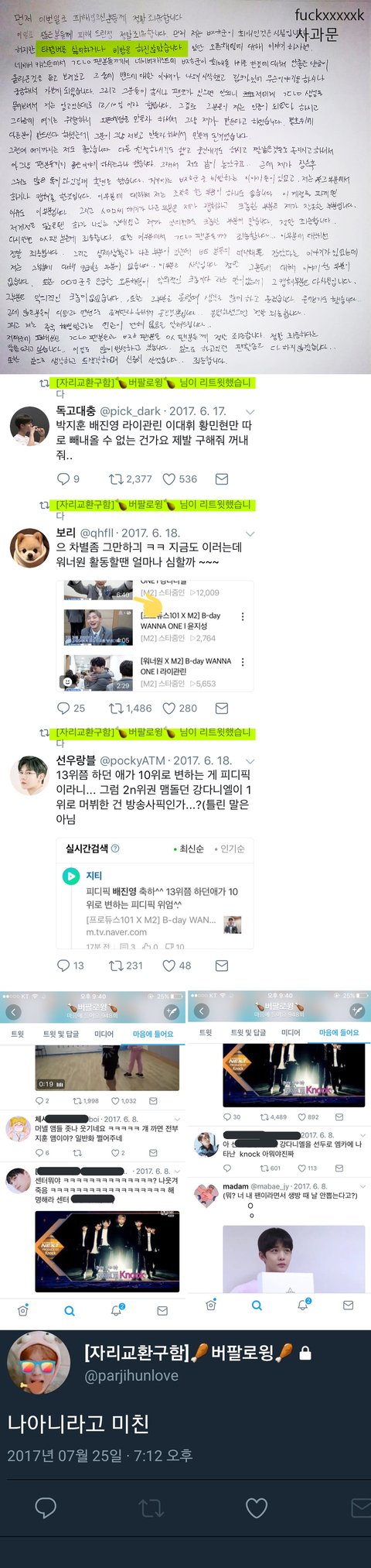6. 그러나 모든게 주작이었단게 밝혀지며 워너원 팬덤 두동강