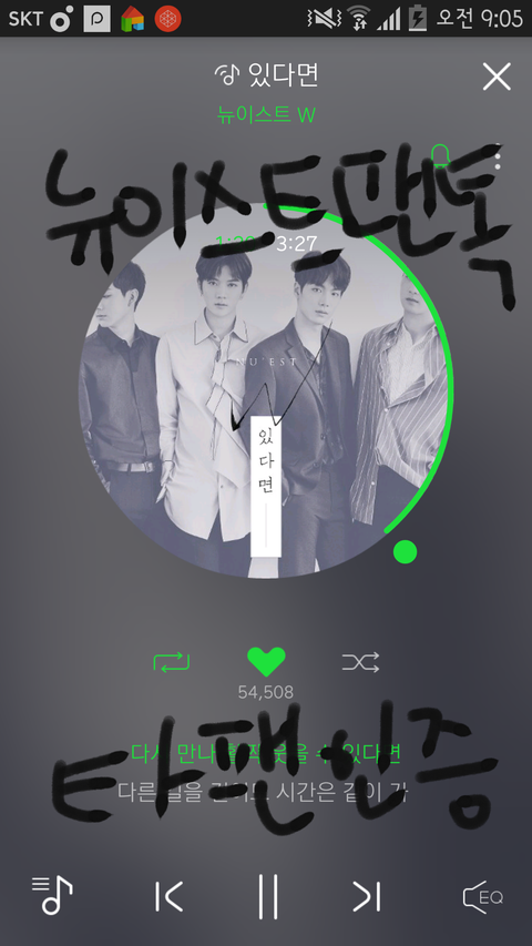 하트도 누르고 노래가 생각보다 많이 좋아서 열심히 듣고 있어요.. 사실 별로 관심 없었는데 러브분들 영업글 보고 착한 마음씨에 감동해서 이렇게 찾아봤는데 노래가 너무 좋아요ㅠㅠ 앞으로도 가끔씩 들을게요! 저는 그 다른 길 거기 랩부분이 너무 발려요.. 음.. 마무리는 엑소엘이랑 러브랑 사이좋게 지냅시다(?)
