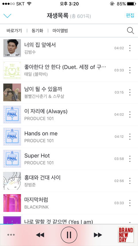 2번질문: 그럼 원래 있던 이 재생목록을 다지우고