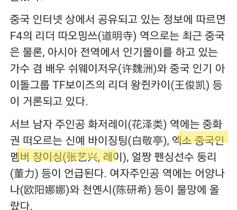 대만 꽃남 리메이크 지후선배역을 밥씽이가
