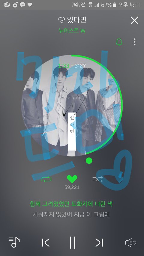 서양수박에서 스밍 할려구!!몇백 곡 있는거 다 지우고 뉴이스트 노래로만 할려궁ㅎㅎ 스밍권장 리스트?좀 보여주라ㅠㅠ미안행..회사라 급해서...음소거모드로 할려꼬..ㅎ