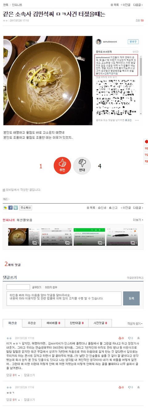 같은 소속사 김민석씨 ㅁㅋ사건 터졌을때는