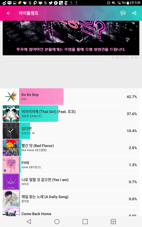 ㅇㅅ분들이랑 ㅈㅇㅎ분이 넘사벽 수준이긴 하지만 그래도 지금 러브들 화력 정도면 어느정도 가능성 있을 수 있어 그러니까 다들 쇼1챔 앱 깔고 투표하러 가 한 사람당 투표 3번 가능해 3번 모두 다 뉴이스트 투표!!