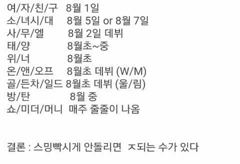 8월에도 컴백 많이해서 스밍진짜 열심히 돌려야할듯...