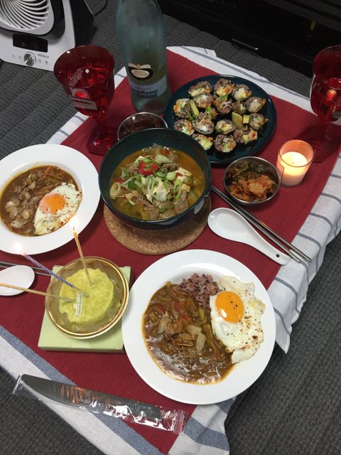 남편 생일이라, 차돌된장에 아보카도 김밥을 더했어요.