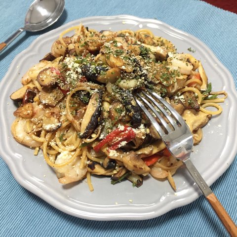 제일 많이하는 오일파스타. 게맛살 넣고 표고 넣으면 한층 고급스러운 맛이납니다:-)
