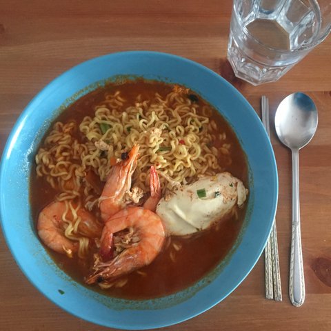 라면에도 새우 필수! 계란은 저렇게 통째로 익혀 먹는걸 좋아해요. 물론 계란은 반숙.