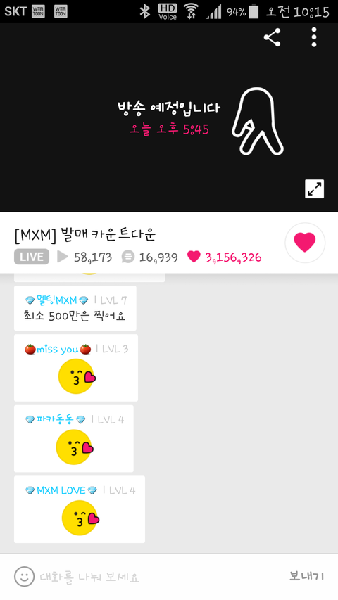 아직 300만개야ㅜㅜ 이러다간 천만은 커녕 500만도 힝들어~~ 우리 오전엔 하트에 집중하자
