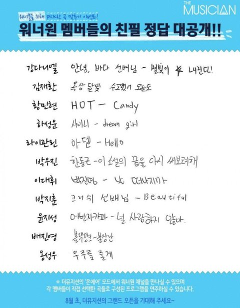 더뮤지션 워너블을 위해 멤버들이 pick한 노래