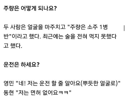 영민이 주량이랑 운전!!@@@
