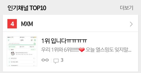 이제 영민이랑 동동이 데뷔하면 MXM도 화력 더 키워야 할 것 같아서! 아직 모르는 사람들은 들어가서 즐찾해줘 지금 mxm 팬톡 인기순위 4위얌!!!@
