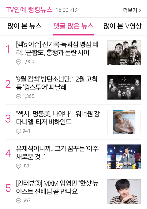 ㄴㅇㅂ 댓글많은 뉴스랑 많이본 뉴스 나란히 5위^^