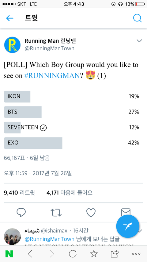 얘들아 이거 하자 뛰어라 에서 투표중임