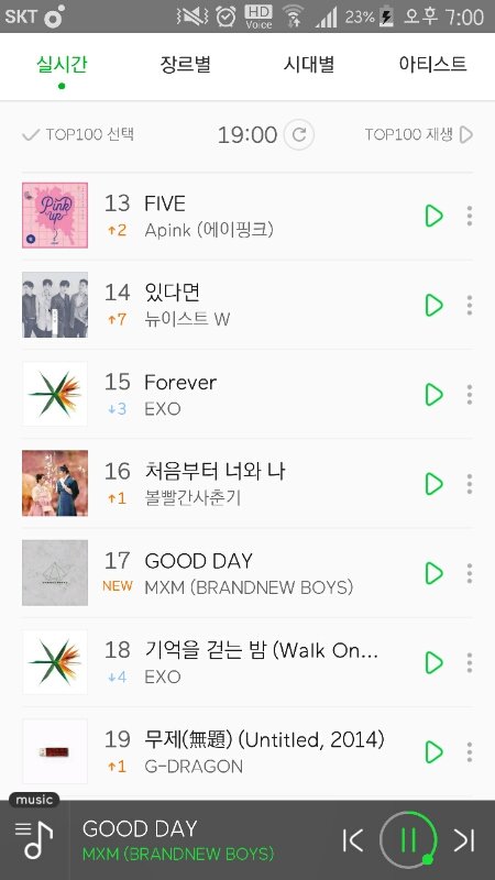 멜론 7시 차트순위!!