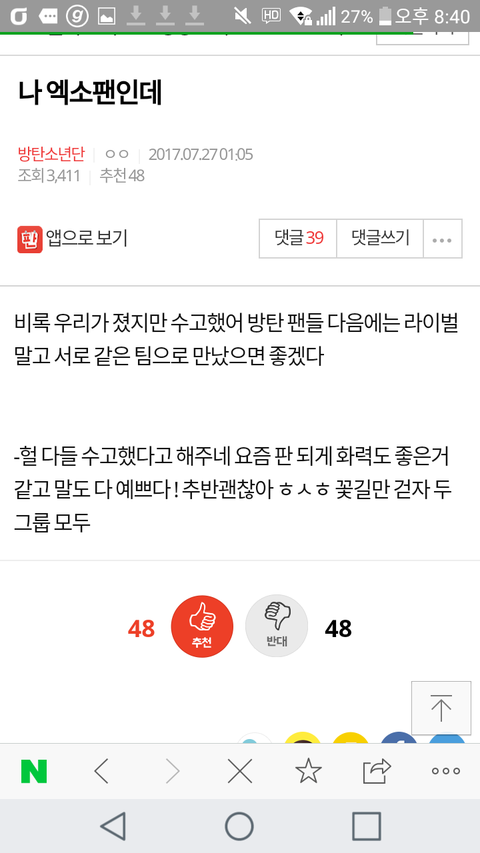 관음아니고 들어가면 랜덤으로뜨는걸로 엑소팬이라길래 봤는데 뭐냐