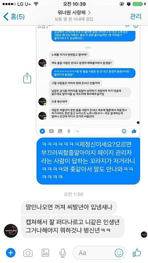 음원 불법 유출 문제에 대해 지적한 글에 와서 어떻게 이렇게 분탕질을 할 수가 있을까요