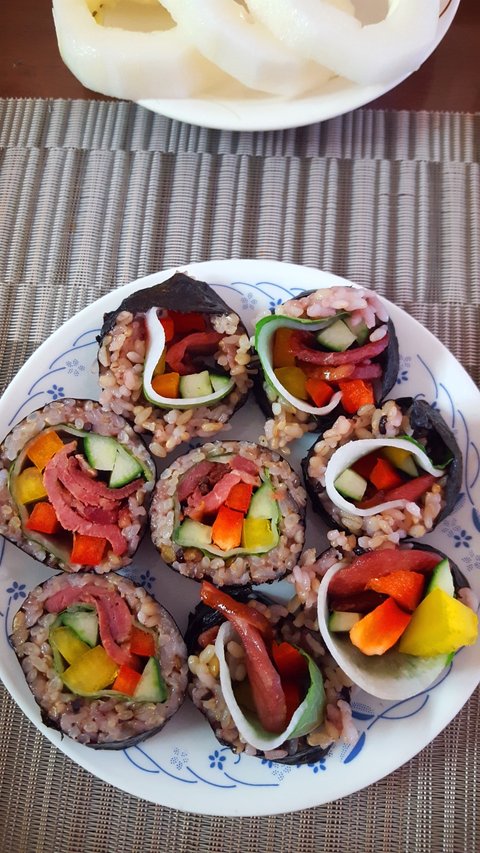 저렇게 갖은 채소랑 같이 둘둘 말아주면