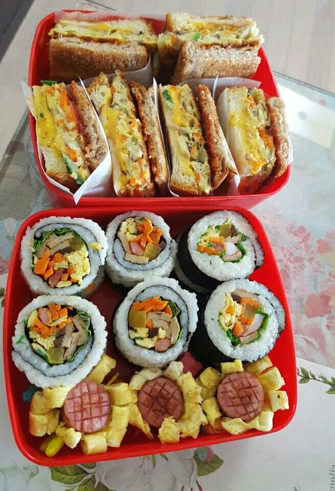 생각해낸 오리고기김밥, 삼겹살김밥.