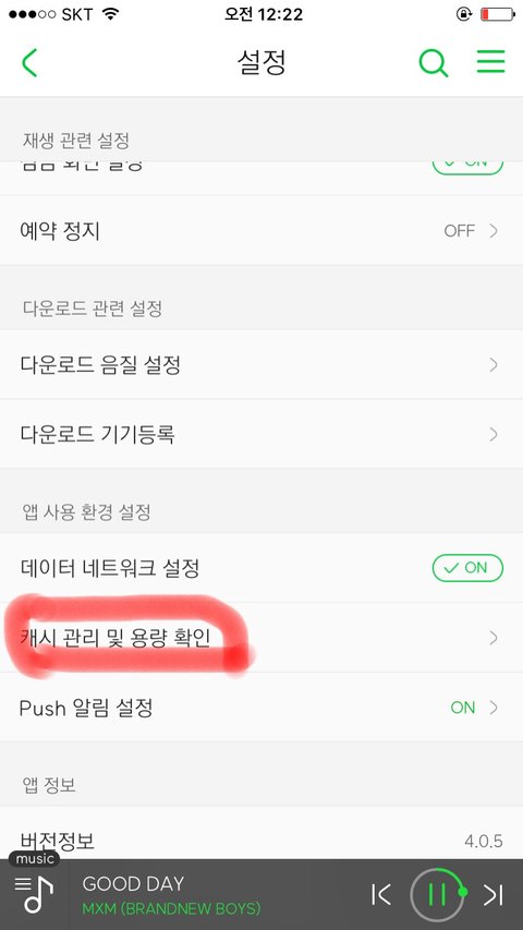 음원캐시관리 - 캐싱적용 OFF 이어야 해 !!