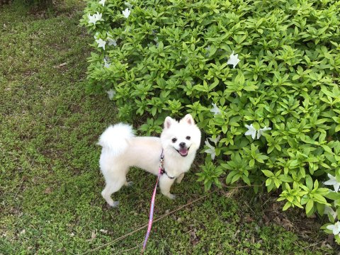 가장 최근 산책중에 찍은거예요 ^_^ 날도 덥고 강아지나 견주분들 모두 산책하기 힘드실텐데