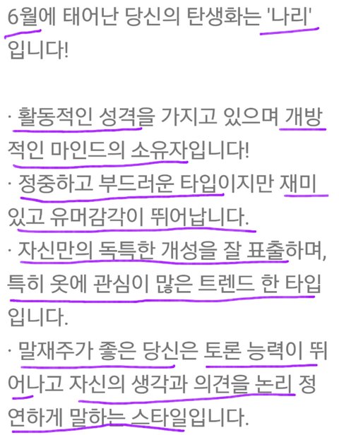 재미로 보는 방탄소년단 탄생화 성격