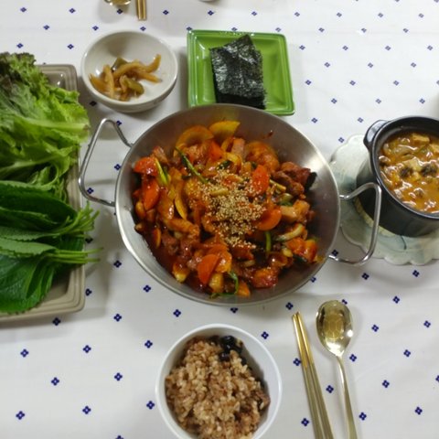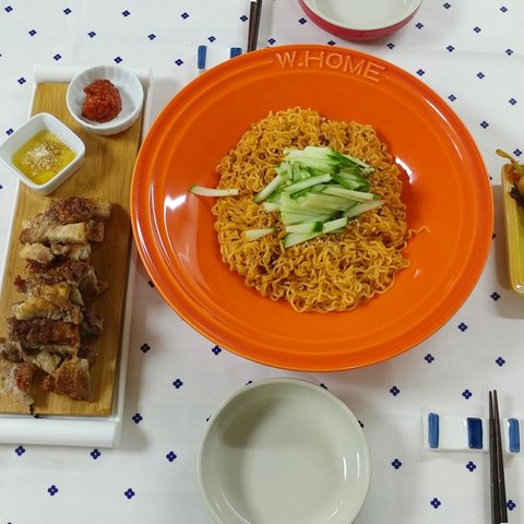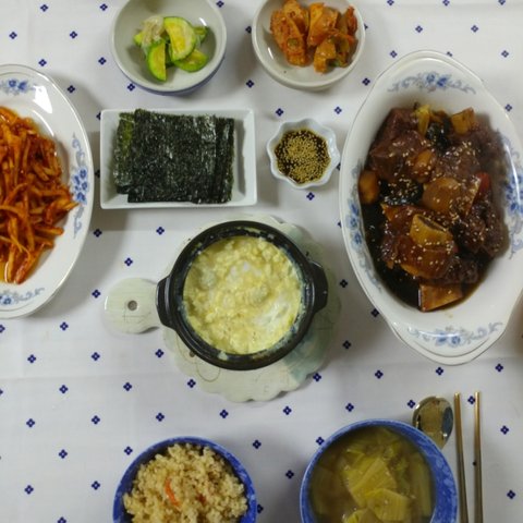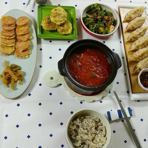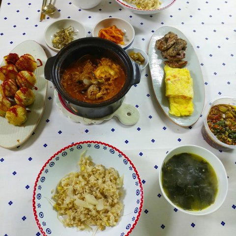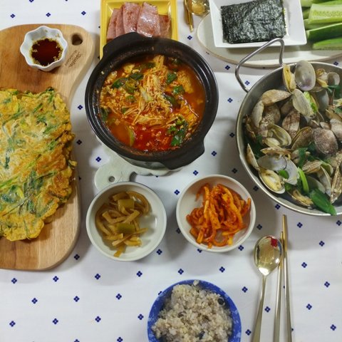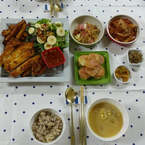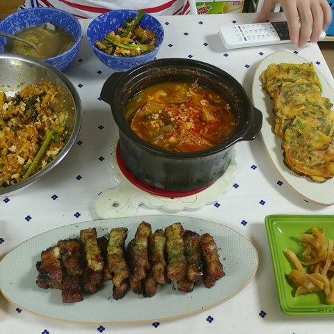 제주도는 정말이지 몇년만에 이렇게 더운거 같아요ㅡ 비도 안오고 바짝바짝 말라가는 느낌입니다. 그래서 매일밥 맥주와 소주를 달고 살게되네요...ㅎㅎㅎㅎ자연스레 음식도 안주들로만....ㅎㅎㅎㅎㅎ정말 오래전이네요....아마 이렇게 더워지기 전인거 같아요. 처음 결혼했을땐, 돈까스도 고기1사다가 두드려 먄들었는데, 요새는 냉동아니고 동네마트에서도 다 만드셔서 팔더라구요..사다가 기름 넉넉히두르고 양면후라이팬 뚜껑 땅 덮고 구우니까 좋더라구요. 기름도 안튀고. 소스는 돈까스 사면 주시는 소스에 케첩이랑 마요네즈 추가하고 견과류 부셔서 넣었어요. 간단히 먹기 좋은거 같아요. 국은 역시나 된장국입니다!ㅜㅜㅜ이날은 정말 냉동식품잔치네요..현실적으로 먀일 해먹고 그러려고해도 맞벌이다보니 냉동실은 이런 비상식품들 꽉꽉이에요. ㅎㅎ퇴근하고 참치김치찌개 끓이는 동안 이거저거 해서 간단히 먹었어요. 남편이 만두를 엄청좋아해서 일주일이면 3일은 먹는거 같아요. 저희는 비비고 왕교자 주고 사다먹구요, 이제품은 이렇게 쪄서 먹고 남으면 기름둘러 한번 튀겨먹어도 맛있더라구요!ㅎㅎㅎㅎ제가...정말로 김밥을 너무너무너무 좋아해서요. 이날은 남편이 저희아빠랑 산소에 일하러 다녀온 날이었어요. 아빠혼자하시니까 힘드시다고 새벽부터 같이 나가서 도와주는데 다녀오면 주려고 열심히했는데....ㅎㅎ재료준비다하고 싸려고하니까 남편 일끝내고 들어오더라구요. 취향껏 쟈료 엄청 넣어서 말았어요. ㅎㅎ여러줄 남아서 한줄씩 호일에 싸더 다음날 남편 출근길에 들려보냈어요. 회사분들 한줄씩 잡고 드시라구요! 이날은 나혼자산다 방송을 보고 급 해먹었던거 같아요. 윤현민씨가 비빔면에 삼겹살 드시는거 보고 저희부부도....ㅎㅎㅎ제주도는 열무비빔면이 강세인데 다른지역은 어떠신가요?ㅎㅎ2명이서 3개는 기본으로....ㅎㅎ기본 양념에 침기름이랑 깨 추가해서 비볐구요! 삼겹살은 요새 마트에서 멕시코산 고기 벌집용으로 여유있게 사서 냉동실에 얼려두고 먹어요. 가격도 저렴하고 저는 좋더라구요. 제주돼지고기 유명하지만ㅜㅜ멕시코산 2배라 정말 할인할때만 사다먹고있어요.쉬는날 쟁여두었던 불고기 해동해서 불에 올리구요 고기 익는동안 제가 먹고 싶은 가지 볶구요,(남편은 가지를 안먹어요. 식감이 싫다는데 저는 그게 더 매력이라 자주 볶아먹어요!) 남편은 조미안된 마른김에 들기름+간장 찍어먹는거 좋아해서 해주었어요. 국은 오늘도 무된장국이에요!쉬는날이었던거 같아요. ㅎㅎㅎ밑반찬들이 샤로 나온걸보니 애호박은 새우젓으로 볶구요 오뎅은 매콤하게 했어요. 무생채도 액젓 살짝둘러 무치구요. 갈비찜은 오래오래 끓여야 야들야들해서 더 맛나는거 같아요. 처음 고기 삶은물 버리고 새로 물부어 여채스톡하나 넣고 양념부어 오랴 끓여주었어요. 남편 잘먹어서 좋더라구요!이말은 비오는날이었어요. 주말 다음날인거 같은데 상이 푸딤ㅡ짐한걸보니, 바지락술찜이랑 김치전 그리고 순두부 모두 있네요. 순두부는 처음먹을땐 칼칼하게 저렇게먹구요, 나중에 데울땐 계란하나까서 먹으면 더 맛있더라구요! 바지락 술찜은 정말 가성비 좋은음식이에요. 손질바지락 사다가 마늘 다져서 오일에 향내주다가 바지락넣고 좀 지나면 화이트와인이나 청주 넣어서 끓이다가 파 넣으면 끝이에요! 조개의 감칠맛이란! 다만 요새는 여름이라ㅜㅜ그날 다먹고 껍질 처리안하면 힘들더라구요ㅠ다음날인거 같아요. 계란 넣은 순두부에 계란넣고 비빔밥 만들어 먹었어요. 옆에고기는 갈비찜 양념남은거에 멕시코산 고기를 담가두었다가 구워먹었어요. 간이 잘베서 맛있었어요!나머지는 다 재탕이구요, 무하고 콩나물 넣어서 밥하고 미역국 끓여서 먹었어요. 양념장이 잘되서 밥이 술술 넘어갔어요. 복날이에요! 삼계탕을 먹으러 가볼까 했지만...사람이 너무많아서 마트에서 손질된닭 사다가 닭볶음탕 햐 먹었어요. 우유에 담가두었다가 1차로 삶아서 물 버리고 깨끗한물에 역시 야채스톡하나풀고 간장이랑 고추가루로 간하구요, 감자 듬뿍넣어서 국물있게했어요. 닭곰탕같은느낌이.....ㅎㅎㅎ마트에서 우렁도 보이길래 야채넣고 우렁쌈장두하구요, 생선두 튀겨보았어요.복날이 지난 이번주 수요일같아요. 둘다 먼지먹으며 일한날이라 동시에 고기먹자고해서 마트에 들었는데..ㅜ삼겹살은 하나도없고 앞다리살만 남았더라구요. 5000원어치사다가 고추장베이스로 양념햐서 후다닥 두루치기했어요. 주말에 만든 우렁쌈장올려 맛있게 먹었습니당겐글 읽어주셔서 감사하구용! 날 더운데 모두들 건강 조심하세요. 휴가철이라 여행 다녀오시는 분들도 잘다녀오시구요! 모두들 오늘 도 맛점하세용!