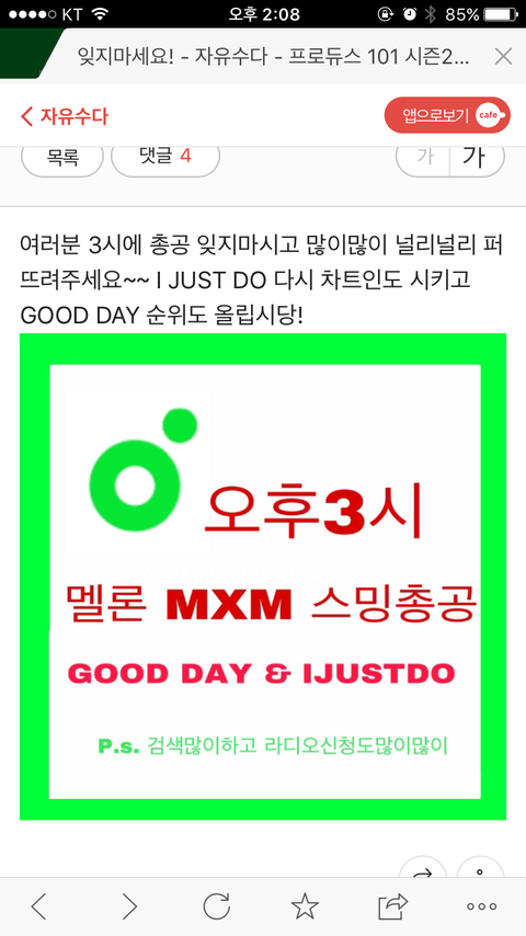 ㄷㅇ 카페에서 본건데 세시에 스밍 하면서 검색 총공한대